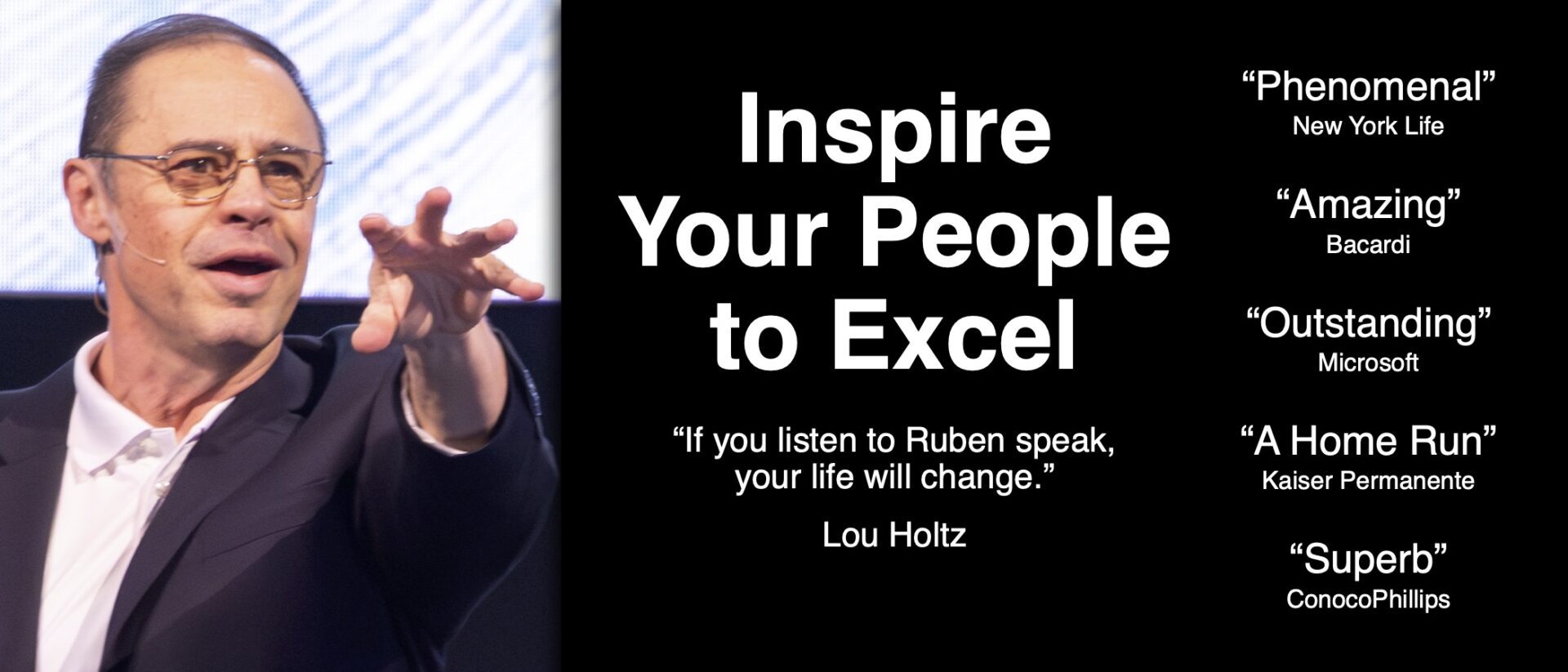 “Ruben has a unique ability to motivate and challenge his audiences. His compelling story provokes us all to set and reach lofty goals.”