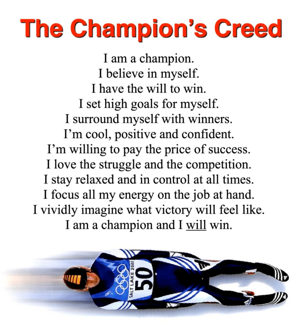 Reading The Champion’s Creed will put you in a strong, determined state of mind.